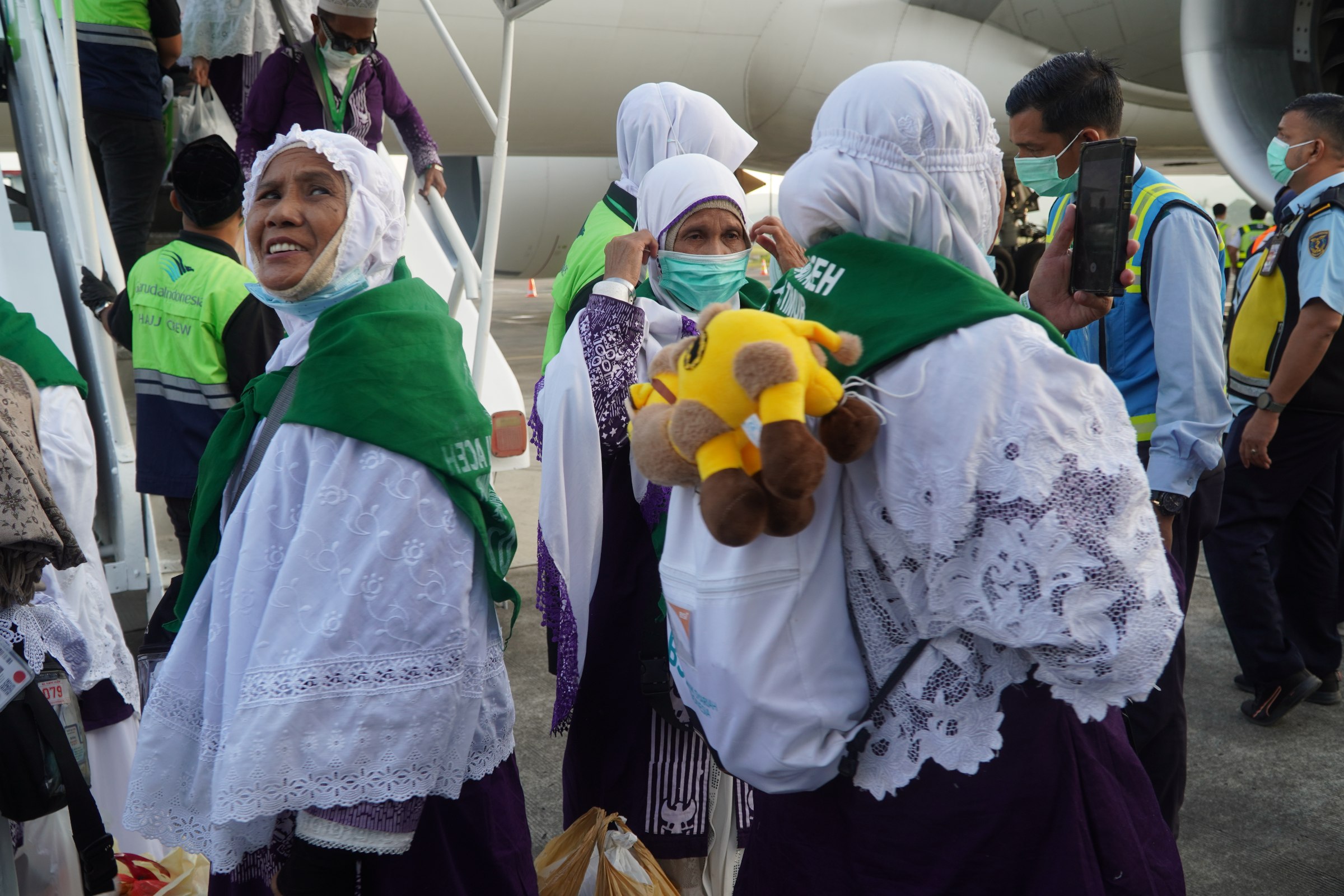 “Alhamdulillah, dengan tibanya kloter 2 ini, sudah 784 jemaah yang kembali ke Aceh,” ujar Azhari.