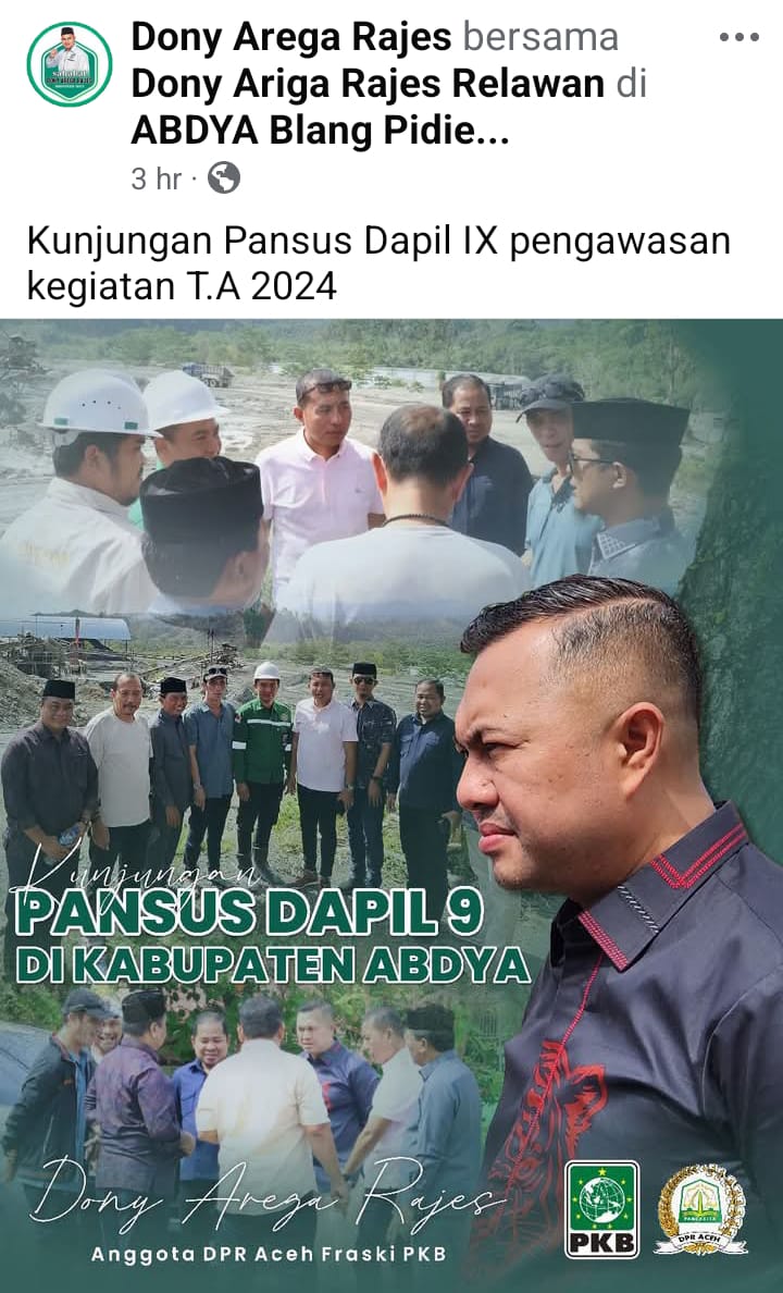 Informasi mengenai kunjungan pengawasan ini justru tidak datang dari rilis resmi Sekretariat DPR Aceh, melainkan dari unggahan pribadi salah seorang anggota dewan, Dony Arega Rajes. Melalui akun media sosialnya, politisi dari Fraksi Partai Kebangkitan Bangsa (PKB) ini mempublikasikan sejumlah foto kegiatannya bersama rekan-rekannya saat berada di Kota Subulussalam dan Kabupaten Aceh Barat Daya (Abdya). Dapil IX sendiri mencakup empat kabupaten/kota, yaitu Aceh Selatan, Aceh Barat Daya, Subulussalam, dan Aceh Singkil.