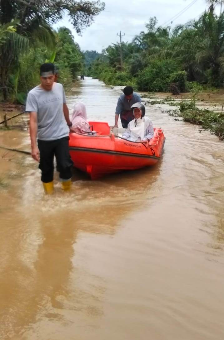 Camat Kluet Tengah, Burhanudin, melaporkan melalui pesan WhatsApp pada Senin (10/11/2025) bahwa genangan air di badan jalan sudah tidak dapat dilalui kendaraan.