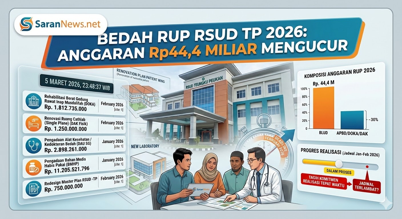 Langkah Konfirmasi ke Pihak Manajemen Guna memastikan transparansi dan akuntabilitas, redaksi sarannews secara resmi telah melayangkan surat konfirmasi kepada Direktur RSUD Teungku Peukan. Fokus utama yang dipertanyakan adalah perbandingan efektivitas anggaran tahun 2026 ini dengan tahun 2025 lalu.