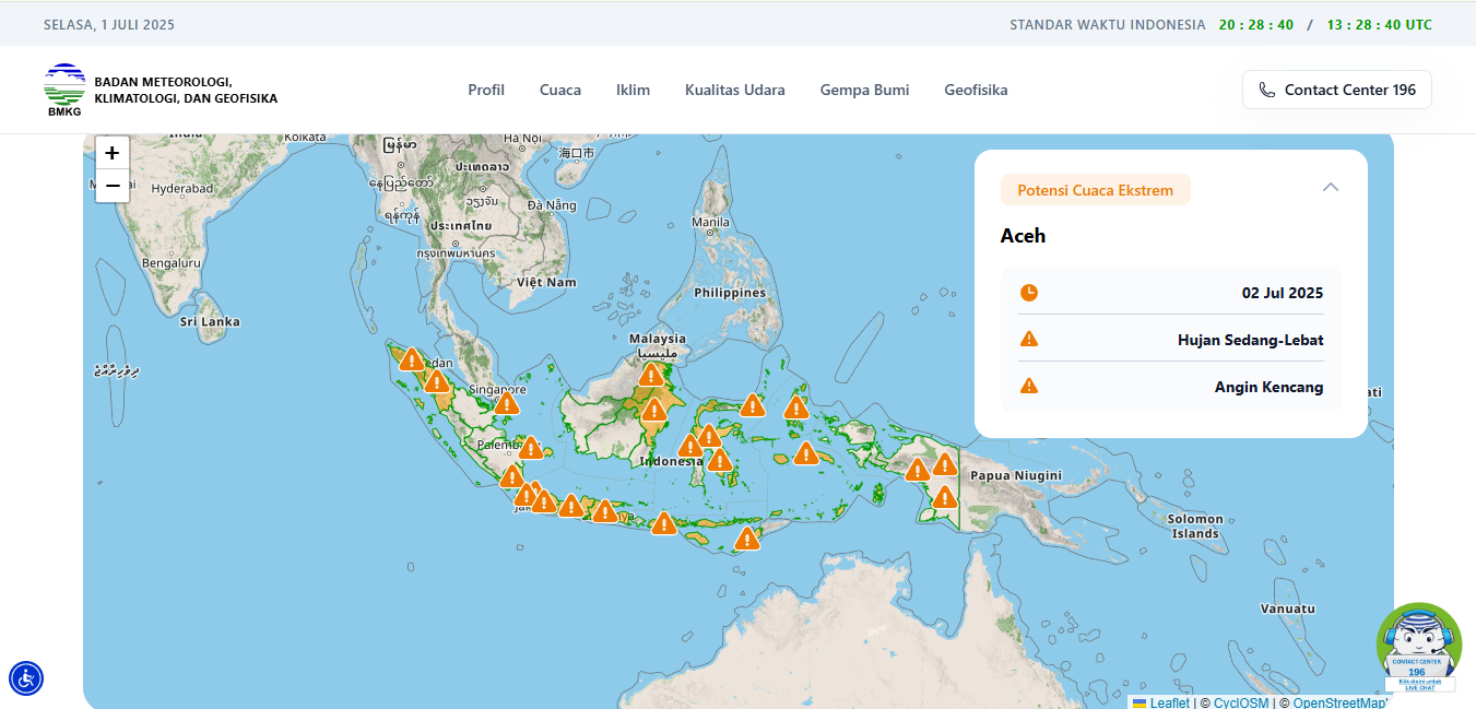 Peringatan ini dikeluarkan sebagai bagian dari sistem peringatan dini BMKG yang diperbarui secara berkala, guna meningkatkan kewaspadaan masyarakat dan pemerintah daerah terhadap potensi bencana hidrometeorologi.