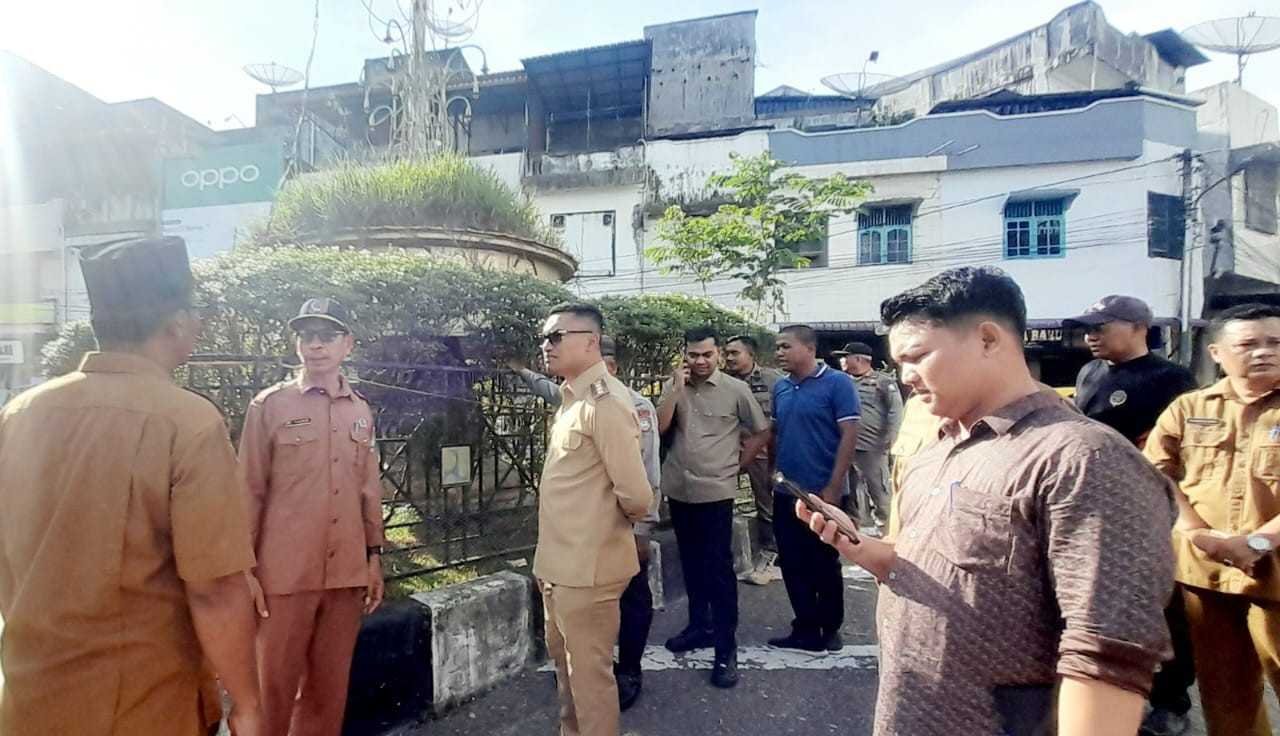 Bupati Abdya Dr Safaruddin bersama tim meninjau lokasi tugu Ceurana di pusat kota Blangpidie, Selasa, 25 Maret 2025. (Foto ADC Bupati/SaranNews.net)