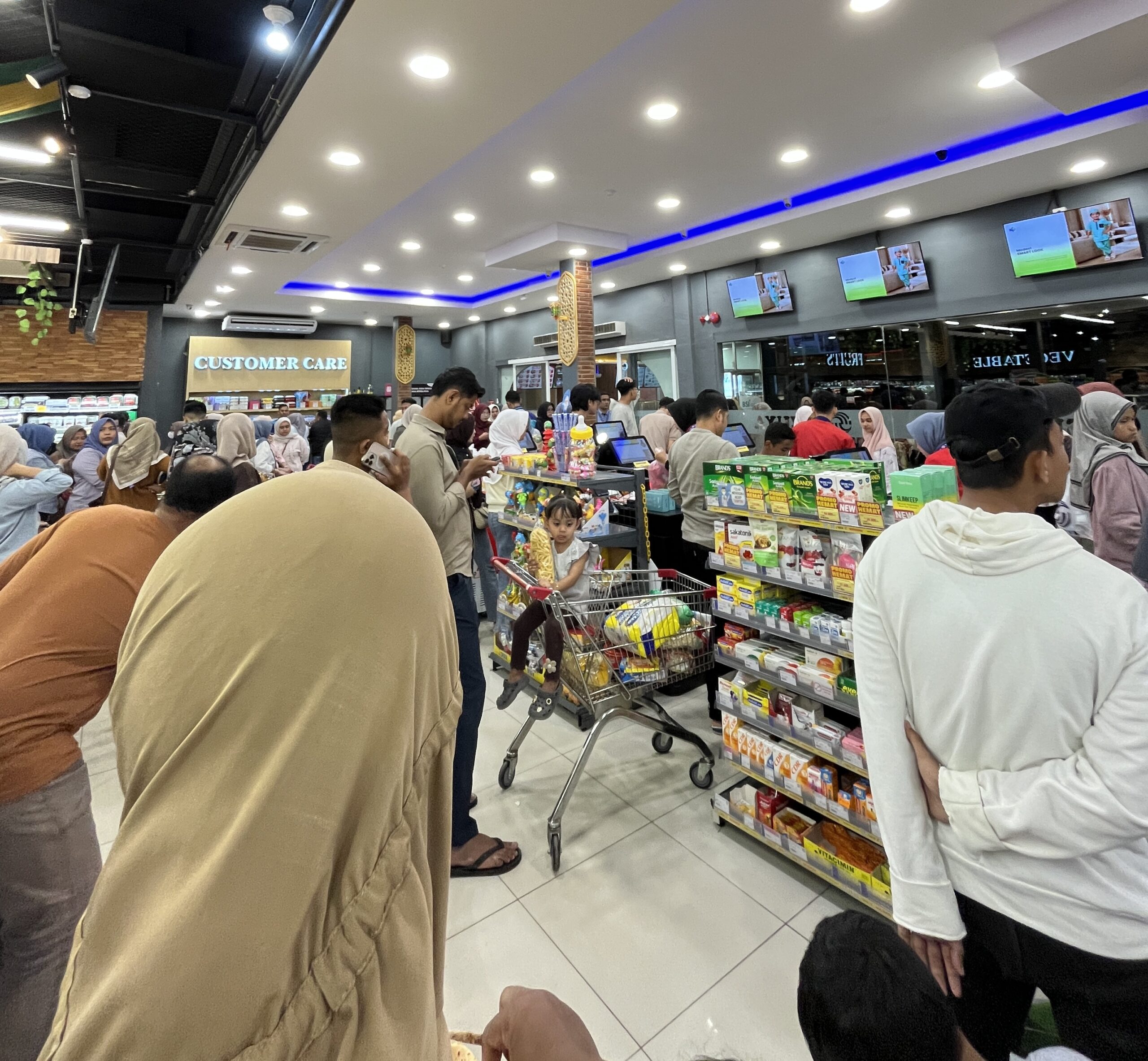 BANDA ACEH | SNN – Suasana di Suzuya Mall Banda Aceh terpantau jauh lebih ramai dari biasanya memasuki pekan kedua Ramadhan. Lorong-lorong swalayan dipadati warga yang berburu kebutuhan harian mulai dari bahan pokok, sayur, buah, hingga produk rumah tangga, yang mengakibatkan antrean di kasir mengular terutama pada sore hingga malam hari.