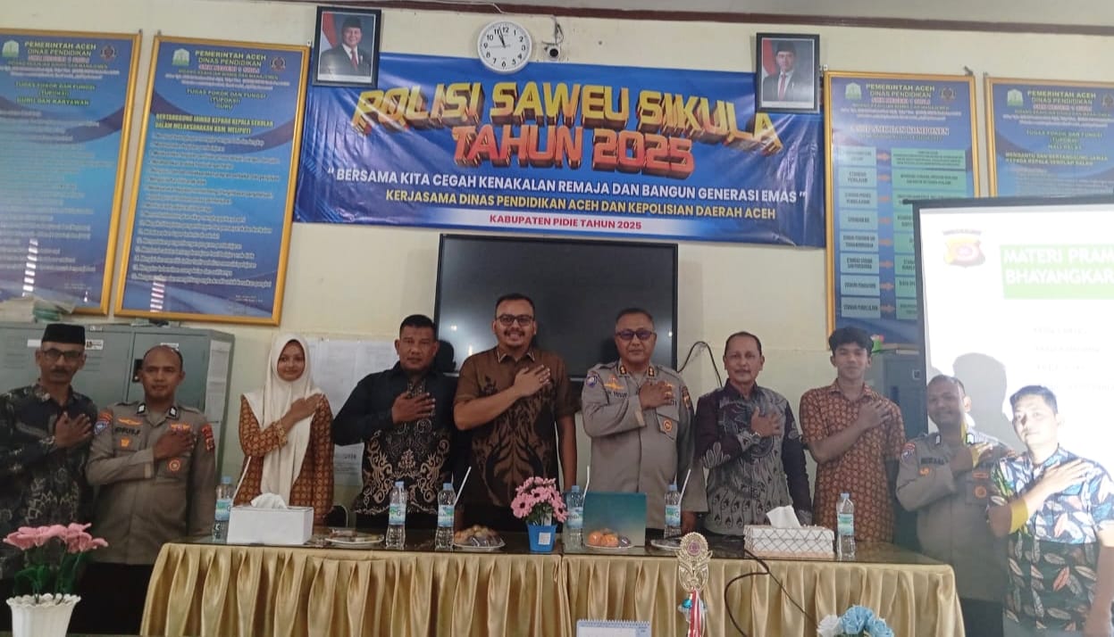 Banda Aceh | sarannews – Ditbinmas Polda Aceh bekerja sama dengan Dinas Pendidikan Aceh melaksanakan program Saweu Sikula di SMK Negeri 1 Pidie, Kabupaten Pidie, serta di SMA Negeri 1 Trienggadeng, Kabupaten Pidie Jaya, Kamis, 11 September 2025.