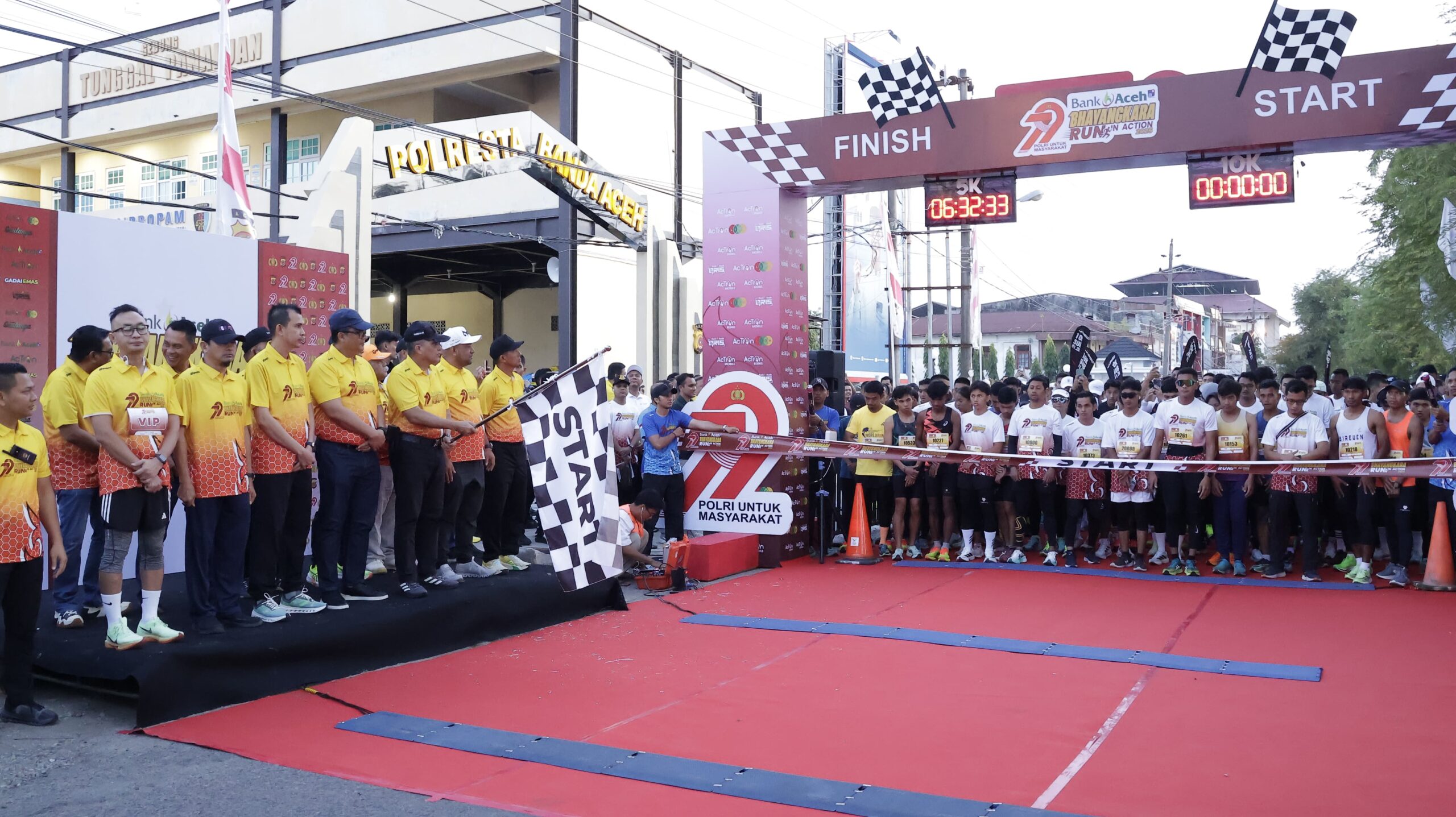 Di akhir sambutan, Kapolda menyampaikan terima kasih dan apresiasi setinggi-tingginya kepada seluruh panitia dan pihak yang telah mendukung terselenggaranya Bhayangkara Run 2025, terutama kepada PT Bank Aceh Syariah selaku sponsor utama.