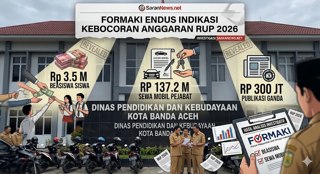 BANDA ACEH | SNN – Dokumen Rencana Umum Pengadaan (RUP) Dinas Pendidikan dan Kebudayaan (Disdikbud) Kota Banda Aceh Tahun Anggaran 2026 mendapat sorotan tajam. Forum Masyarakat Anti Korupsi Indonesia (FORMAKI) membeberkan sejumlah temuan mengejutkan terkait indikasi kejanggalan penganggaran yang berpotensi merugikan keuangan daerah.