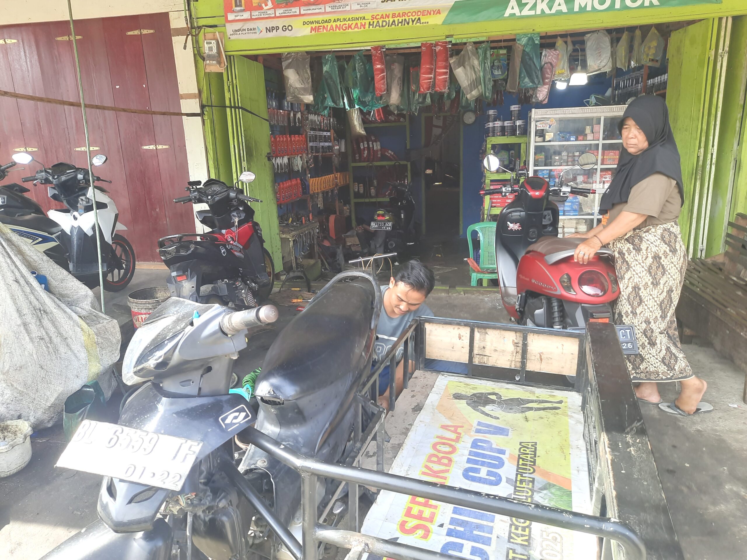 “Pendapatan tergantung jenis kerusakan. Tapi kalau ramai servis dan ganti oli seperti hari ini, omzet bisa tembus Rp800 ribu hingga Rp1 juta per hari,” jelasnya.