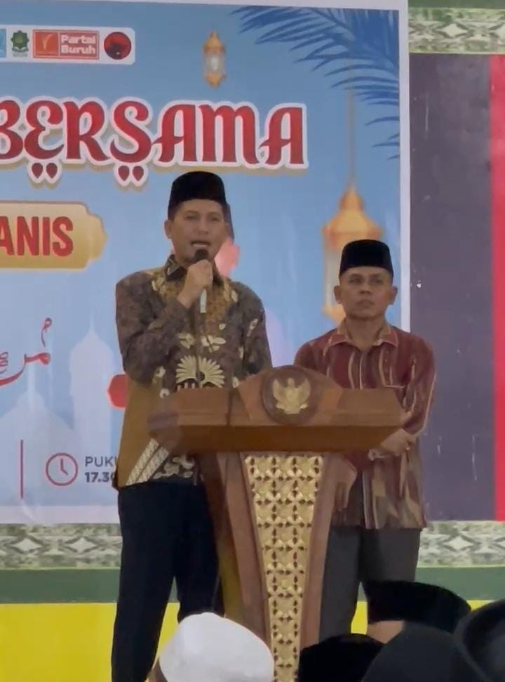 SaranNews.Net – Seribuan Tim Pemenangan H Mirwan – H Baital Mukadis (MANIS) menggelar buka puasa bersama di Rumoh Agam Tapaktuan, Jumat 28 Maret 2025.