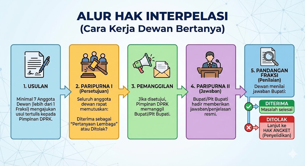 Mengacu pada Undang-Undang Nomor 23 Tahun 2014 tentang Pemerintahan Daerah, Hak Interpelasi sejatinya sangat sederhana. Ia adalah hak DPRK untuk meminta keterangan kepada Kepala Daerah mengenai kebijakan yang “penting, strategis, dan berdampak luas”.