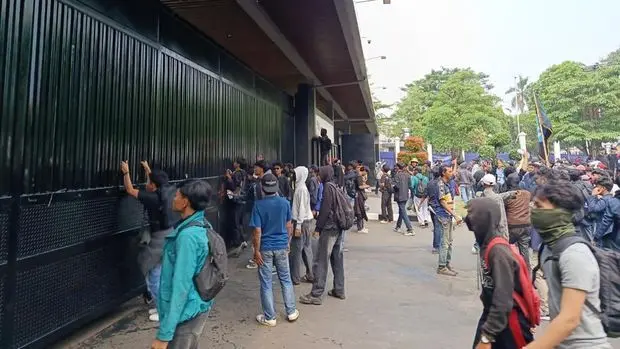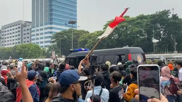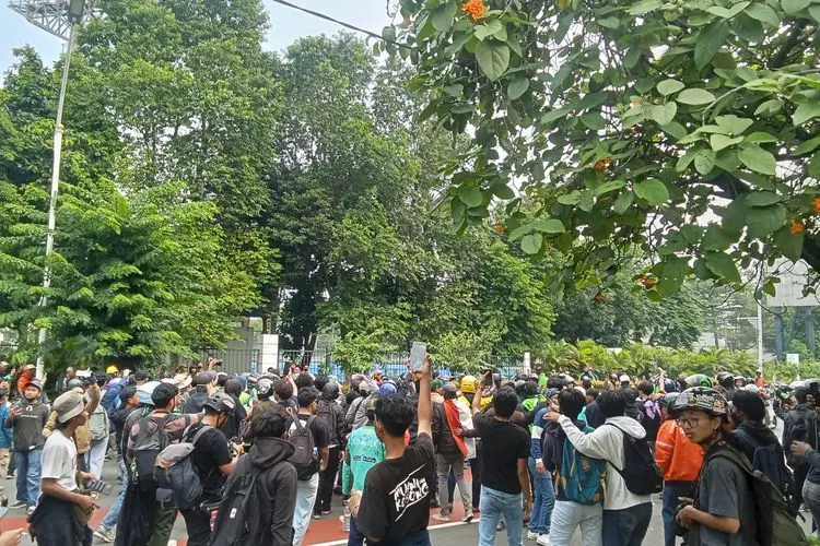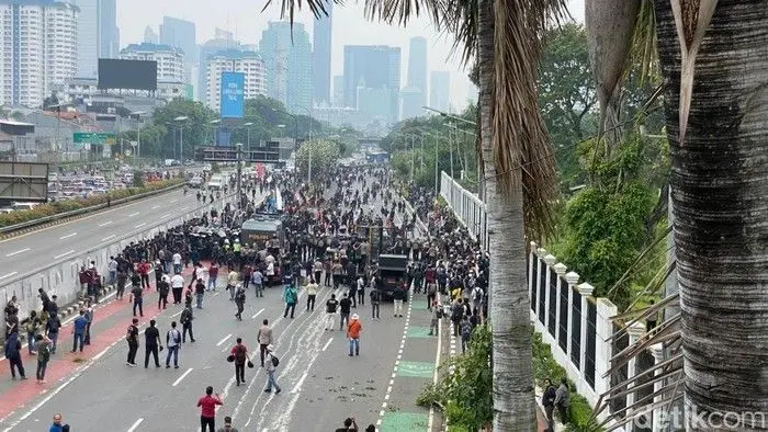 Kantor berita Antara melaporkan massa dari berbagai elemen masyarakat termasuk pelajar, terus mencoba merangsek ke Jalan Gatot Subroto untuk menuju ke depan Gedung DPR pada Senin sore.