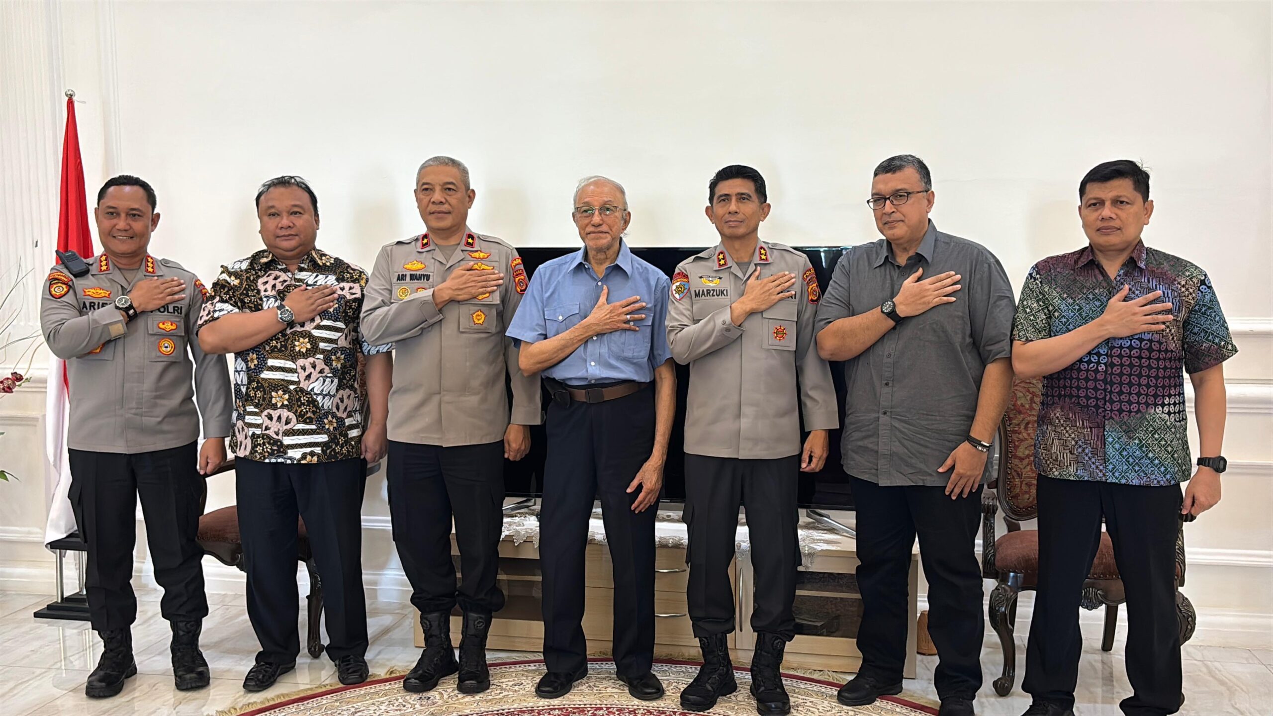 Banda Aceh | sarannews – Kapolda Aceh Irjen Marzuki Ali Basyah bersama Wakapolda Brigjen Ari Wahyu Widodo melaksanakan silaturahmi dengan Wali Nanggroe Aceh Paduka Yang Mulia Tgk. Malik Mahmud Al Haytar di kediamannya, Lampenerut, Kabupaten Aceh Besar, Jumat, 19 September 2025.