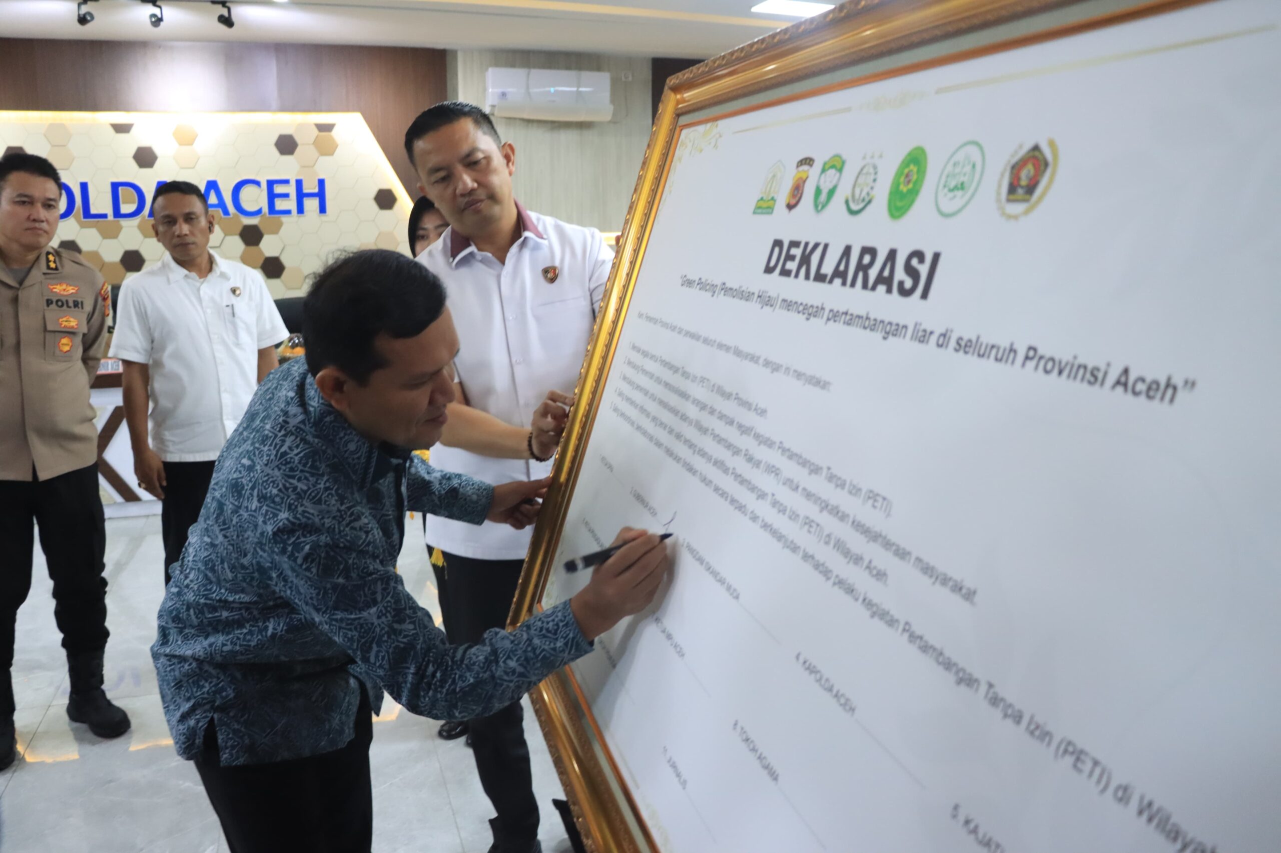 Dalam deklarasi yang turut dihadiri Wakil Gubernur Aceh, Fadhlullah, dilakukan penandatanganan bersama sebagai komitmen untuk menolak segala bentuk Pertambangan Tanpa Izin (PETI) di Aceh.