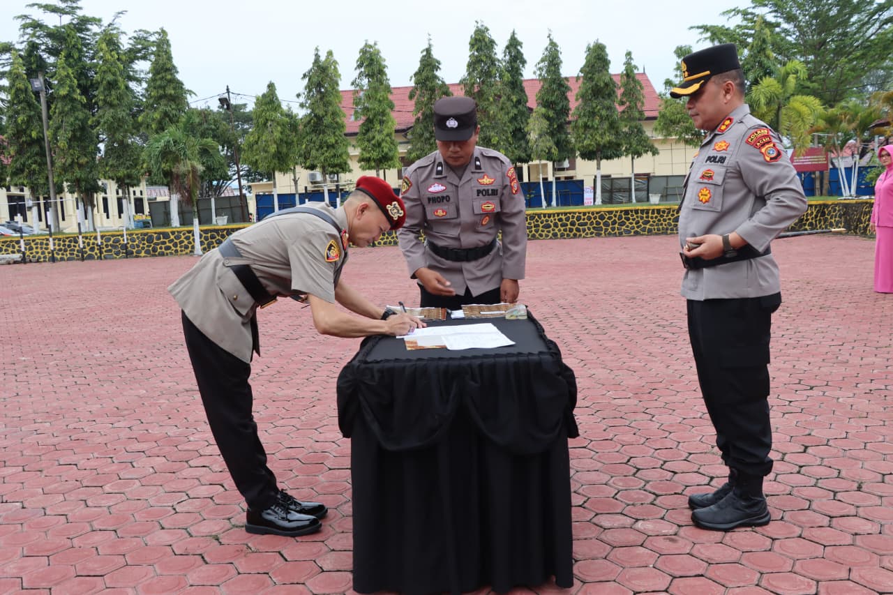 Upacara sertijab turut diwarnai dengan pengambilan sumpah jabatan serta penandatanganan fakta integritas oleh pejabat baru. Kegiatan ini dihadiri para pejabat utama Polres Aceh Tamiang, Ketua Bhayangkari Cabang Aceh Tamiang beserta pengurus, serta personel Polres dan Polsek jajaran.[red]