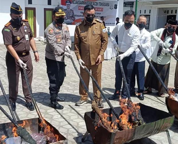 Kepala Kejari, Lilik Setiyawan mengatakan, pemusnahan ini sebagai bagian dari pelaksanaan putusan pengadilan terhadap benda sitaan telah memperoleh kekuatan hukum sejak Desember 2024 hingga Mei 2025, uajra Lilik Setiyawan Kepala Kejaksaan Negeri Aceh Tenggara.