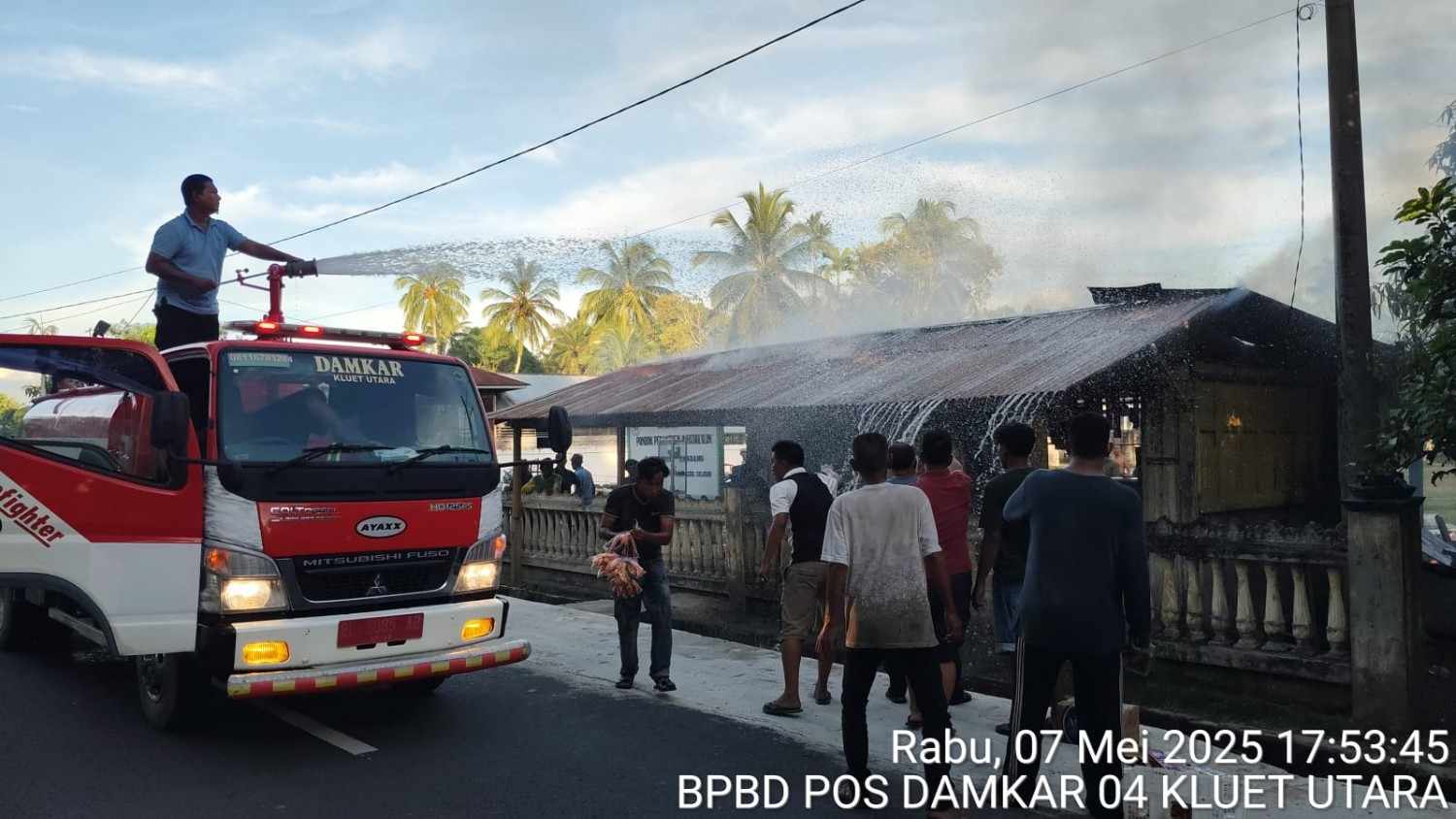 “Kebakaran akibat kayu yang dibakar di samping kios,sedangkan kios dalam keadaan tertutup dan penghuninya tidak ada, lalu api membesar membakar bagian atap kios tersebut,” kata pemegang callsign RAPI JZ01CSZ tersebut.