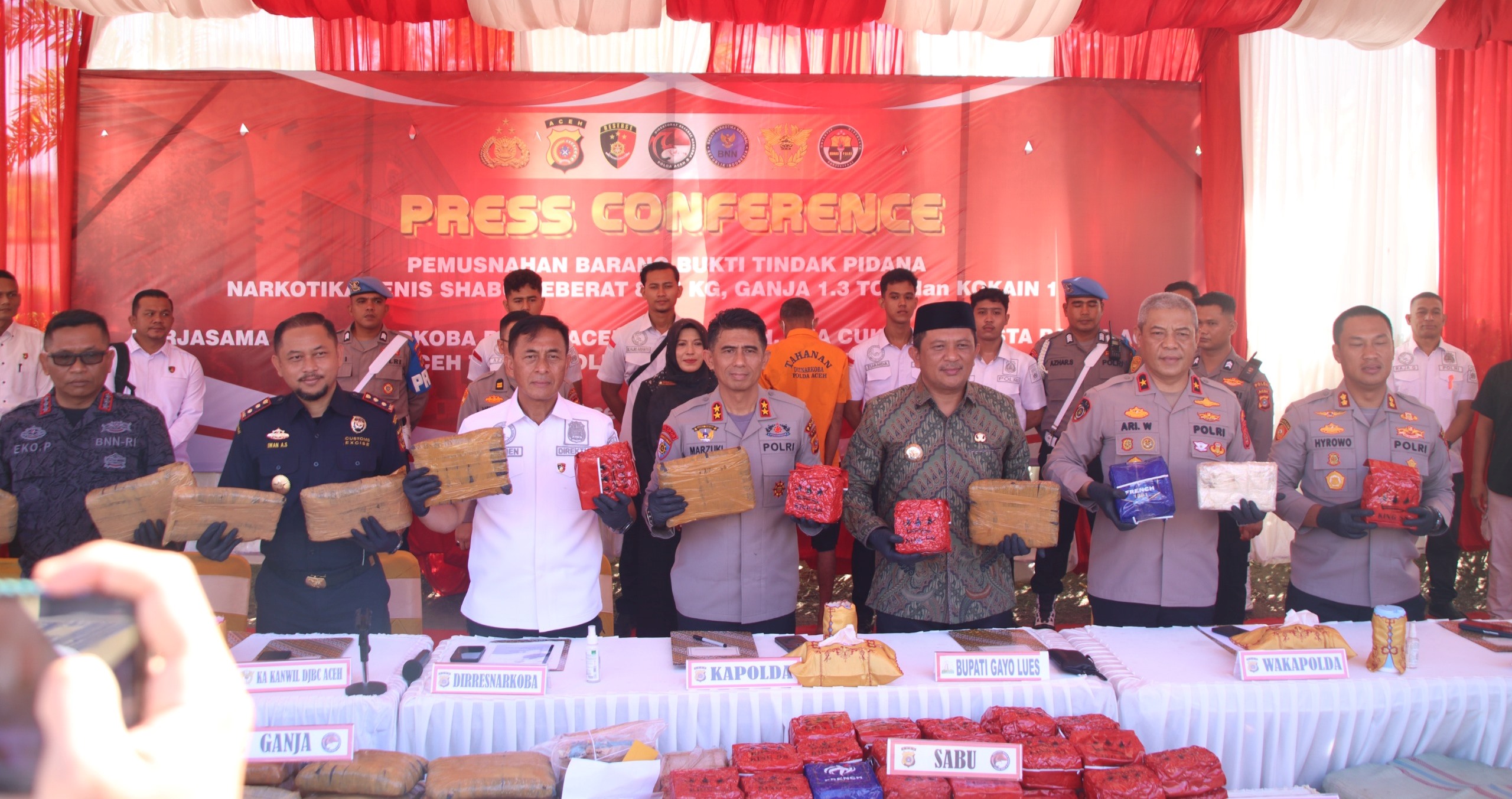 Selain sabu, Polda Aceh juga memusnahkan 1,3 ton ganja dan 1 kilogram kokain. Seluruh barang bukti tersebut merupakan hasil pengungkapan kolaboratif antara Ditresnarkoba Polda Aceh, BNNP Aceh, Direktorat Jenderal Bea dan Cukai, Polresta Banda Aceh, Polres Aceh Timur, Polres Gayo Lues, dan Polres Sabang.