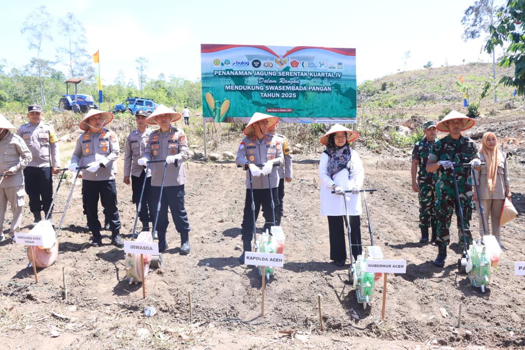 Hal itu disampaikan Kapolda Aceh, Irjen Pol. Marzuki Ali Basyah, saat melaksanakan penanaman jagung serentak kuartal IV di Desa Suka Damai, Kecamatan Lembah Seulawah, Kabupaten Aceh Besar, Rabu, 8 Oktober 2025.