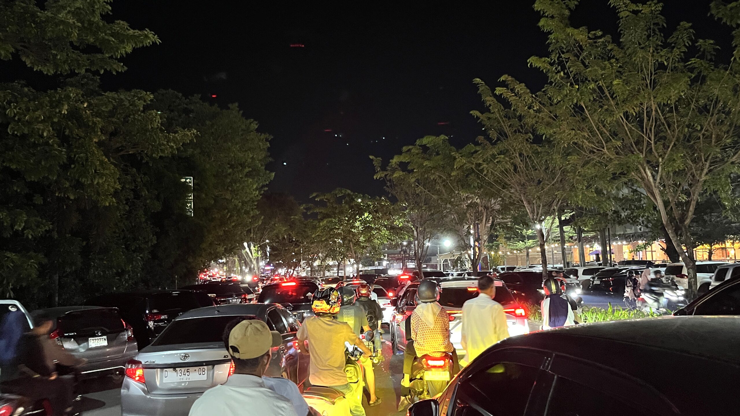Padatnya arus lalu lintas disebabkan oleh banyaknya kendaraan roda dua maupun roda empat yang keluar masuk area parkir plaza. Selain itu, banyaknya kendaraan yang berhenti di pinggir jalan untuk menurunkan atau menjemput penumpang semakin memperparah penyempitan jalur, sehingga kendaraan yang melintas terpaksa bergerak perlahan.