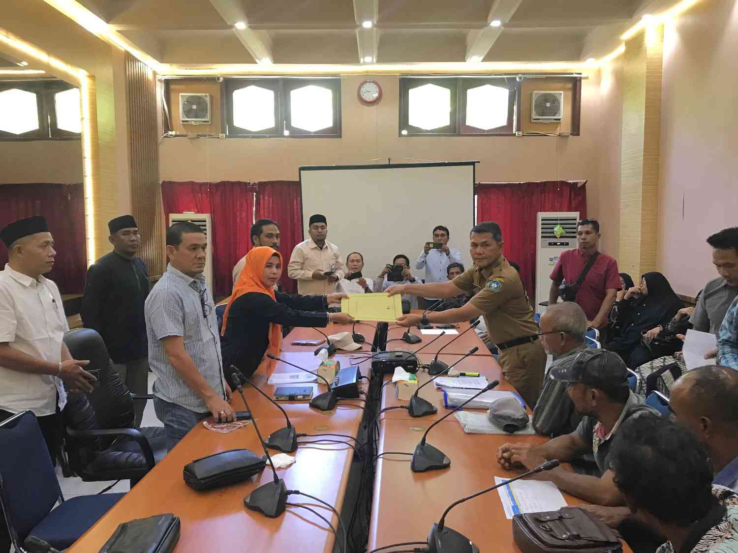 SaranNews.Net – Perwakilan masyarakat yang terkena lahan akibat pembangunan jembatan Krueng Baru Kecamatan Labuhan Haji Barat melakukan audensi (hearing) ke Gedung DPRK Aceh Selatan Senin, (3/3/2025). Mereka disambut oleh Ketua DPRK Rema Mishul Azwa, Wakil Ketua DPRK Rasmadi dan Ali Basyah (Irhafa Manaf).