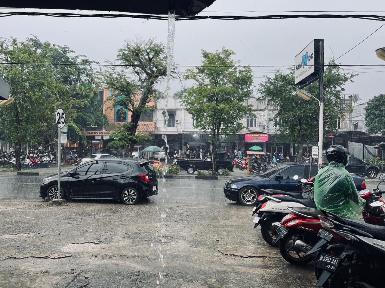 Pantauan di sejumlah ruas jalan protokol, laju kendaraan tampak melambat. Banyak pengendara roda dua memilih berteduh di emperan toko, menghindari jalanan yang mulai licin dan genangan air yang muncul di beberapa titik rendah.