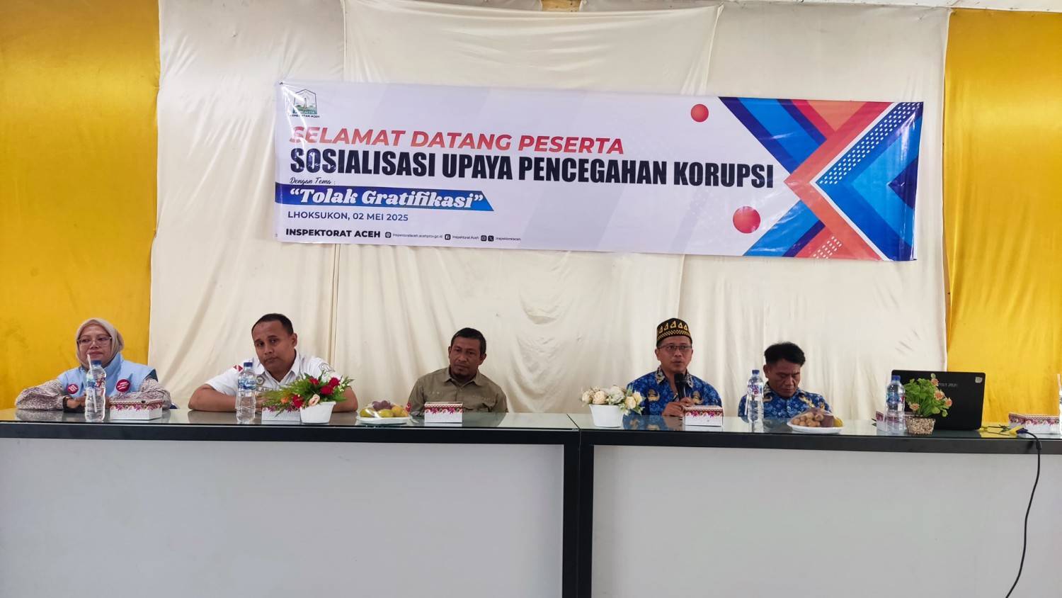 Plt Kacabdisdik Wilayah Aceh Utara, Khairuddin, MPd kepada media ini, Sabtu (3/5) menyampaikan, apresiasinya atas inisiatif Inspektorat Aceh memberikan wawasan tentang gratifikasi dan komitmen untuk menolaknya.