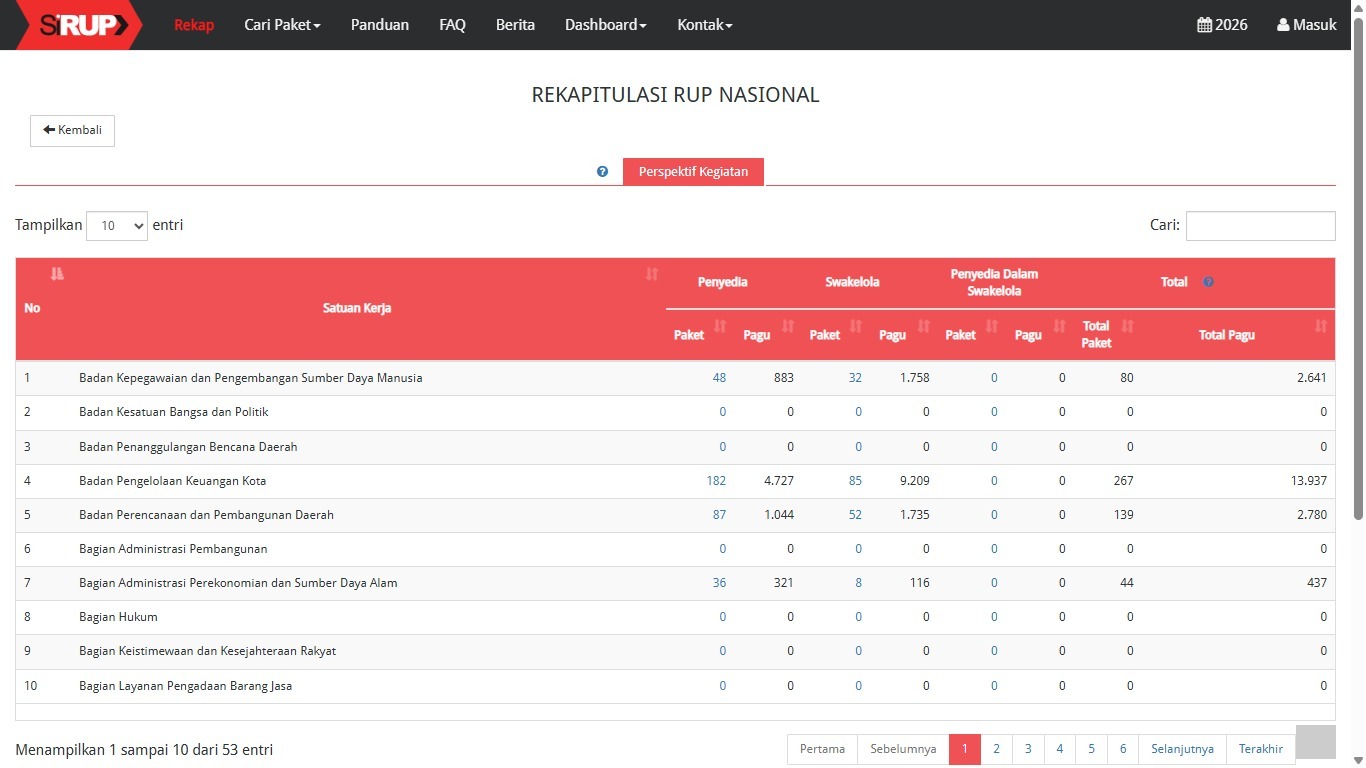 BANDA ACEH | SNN — Transparansi rencana belanja publik Pemerintah Kota Banda Aceh tahun anggaran 2026 masih berjalan di tempat. Hingga pertengahan Februari, tercatat 20 dari 53 satuan kerja (satker) belum menayangkan satu pun paket pengadaan di Sistem Informasi Rencana Umum Pengadaan (SiRUP) LKPP, Senin (9/2/2026).