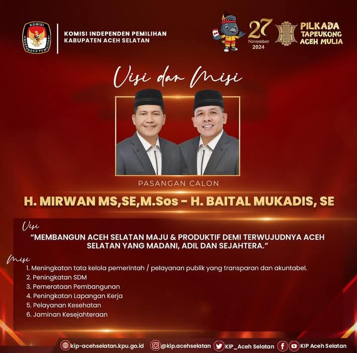 Namun untuk mencapai itu semua, H.Mirwan dan Baital Mukadis perlu kabinet kerja yang baik dan profesional untuk mewujudkan semua visi dan misi menuju Aceh Selatan Maju dan Produktif.