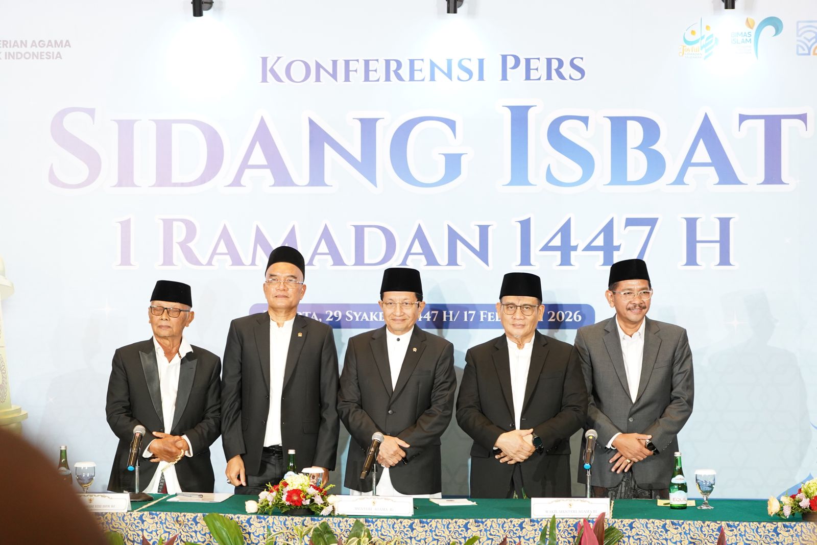 “Berdasarkan hisab posisi hilal seluruh Indonesia sudah di bawah ufuk dan tidak memenuhi kriteria MABIMS baru, serta laporan rukyatul hilal tidak melihat hilal. Oleh karena itu, sidang isbat secara mufakat menetapkan 1 Ramadan 1447 Hijriah jatuh pada hari Kamis, tanggal 19 Februari 2026,” ujar Nasaruddin Umar saat membacakan keputusan sidang di hadapan awak media.