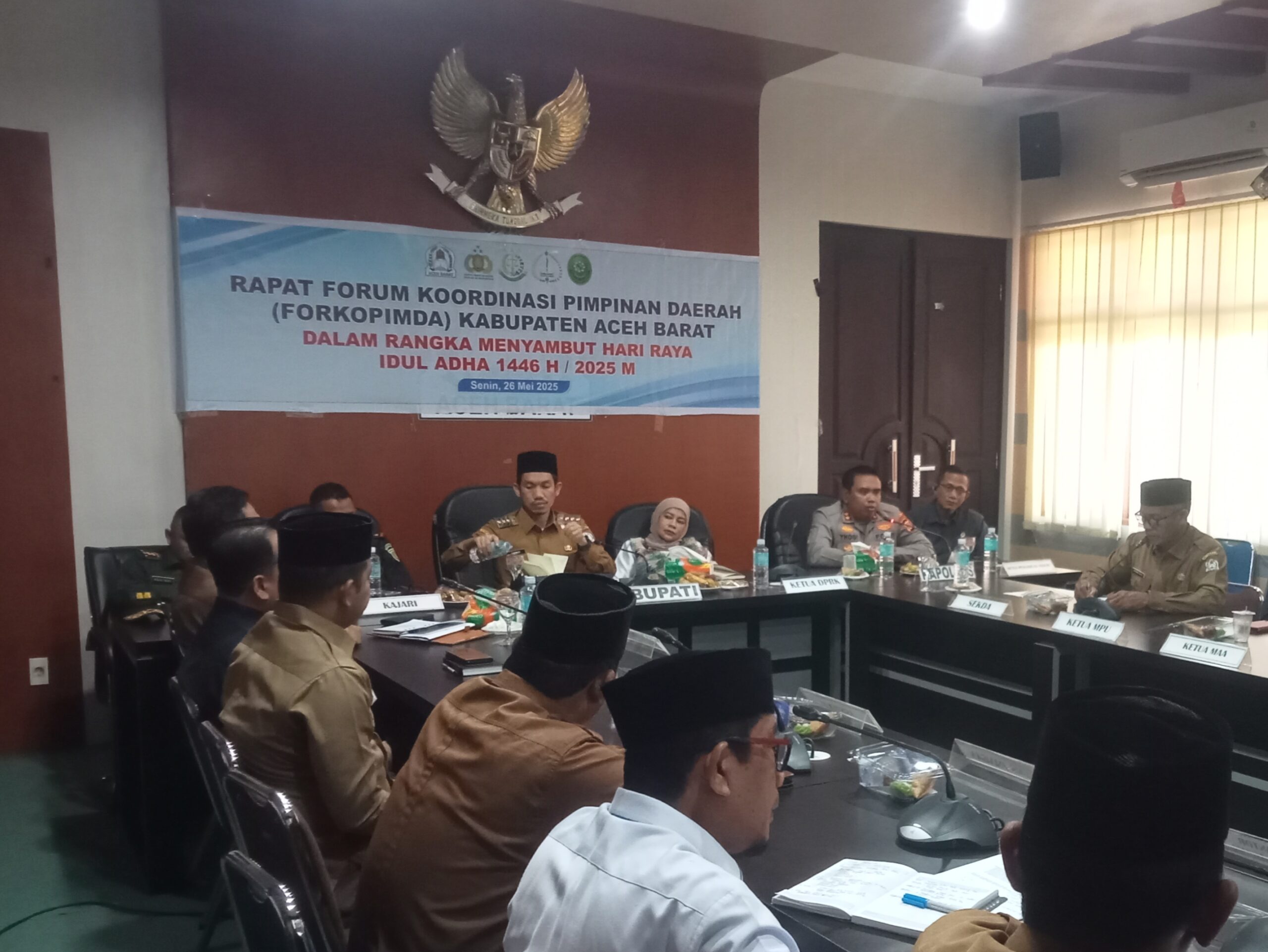 SaranNews||ACEH BARAT– Pemerintah Kabupaten Aceh Barat menggelar Rapat Koordinasi Pimpinan Daerah (Rakorpimda) pada Senin (26/5/2025) di aula cut nyak dhien kantor Bupati dalam rangka menyambut Hari Raya Idul Adha 1446 H/2025 M, Senin (26/5/2025).