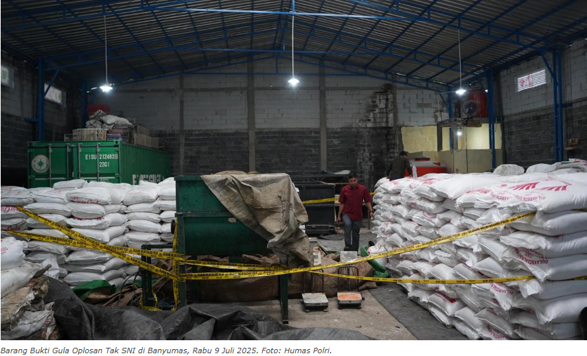 Sarannews | Banyumas – Kepolisian Daerah Jawa Tengah berhasil mengungkap praktik produksi dan distribusi gula oplosan yang tidak memenuhi Standar Nasional Indonesia (SNI) di wilayah Kabupaten Banyumas.
