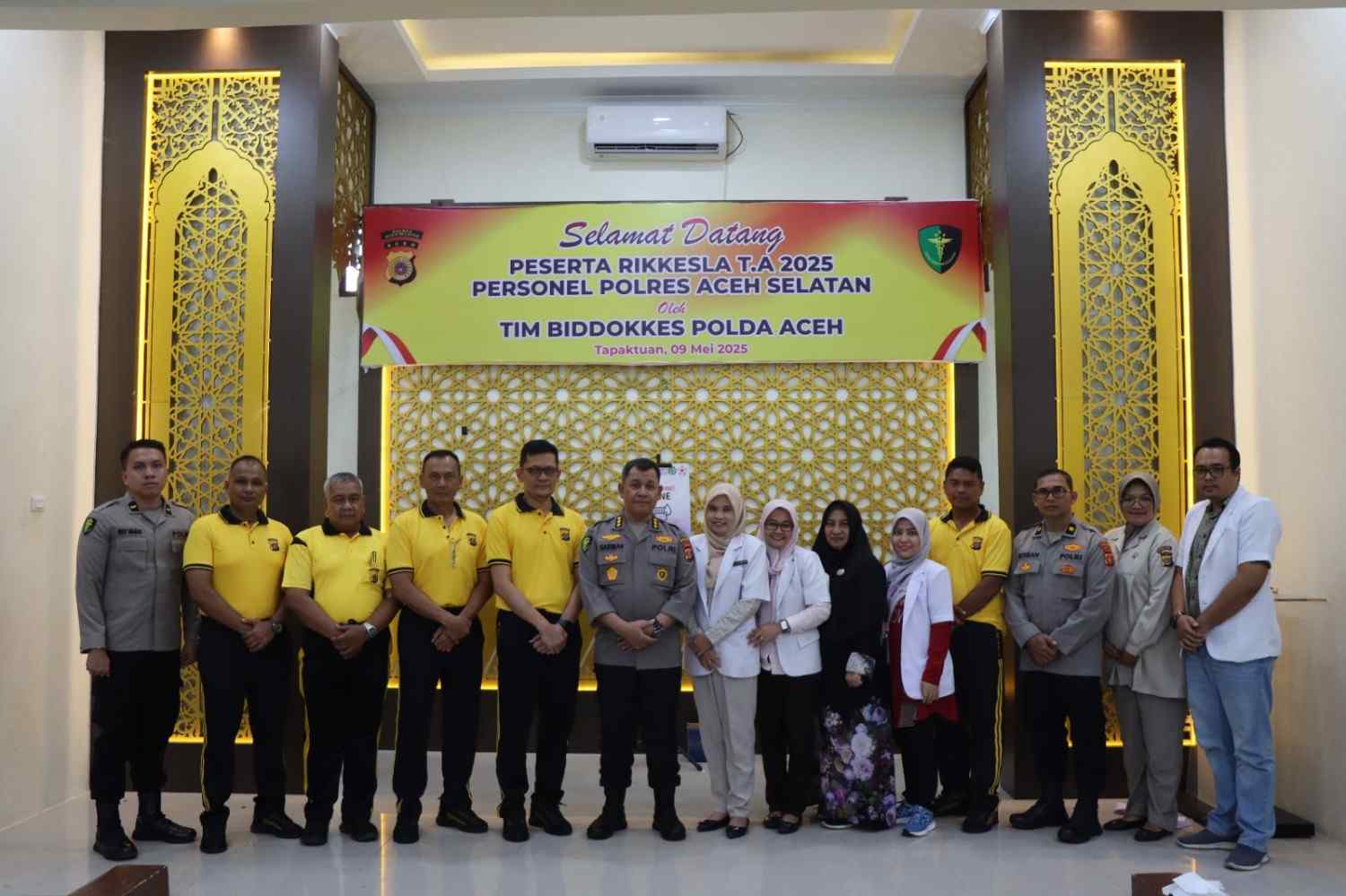 Tapaktuan|SaranNews .Net – Dalam rangka menjaga kondisi fisik dan mendukung kesiapan personel dalam menjalankan tugas, Polres Aceh Selatan Polda Aceh bekerja sama dengan Biddokkes Polda Aceh dan Klinik Riset Medical Check-up melaksanakan kegiatan Pemeriksaan Kesehatan Berkala (Rikkesla) Tahun Anggaran 2025. Kegiatan ini berlangsung di Aula Bhara Daksa Polres Aceh Selatan, Jumat, 9 Mei 2025.