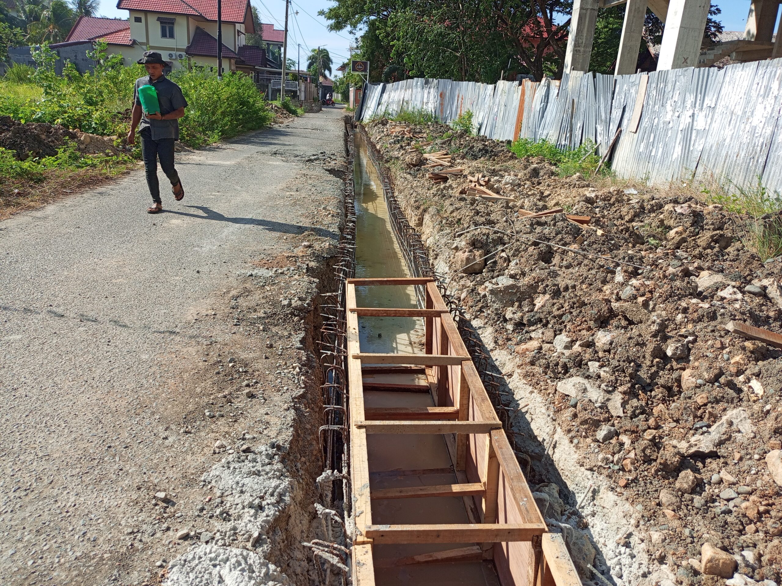 - Praktik Konstruksi Diragukan: Pengecoran lantai saluran dilakukan dalam genangan air, sebuah metode yang berisiko menurunkan kualitas beton secara drastis.