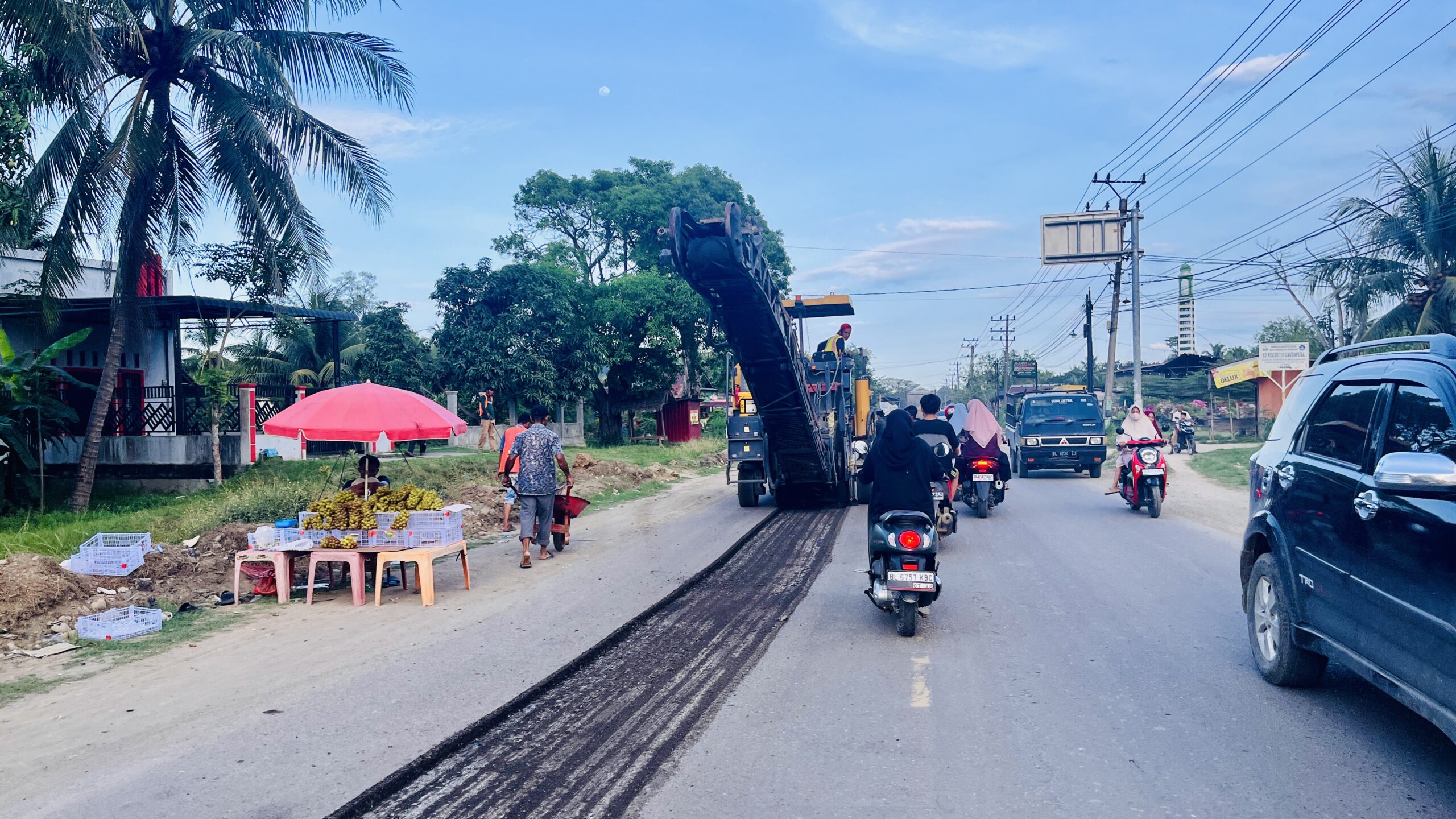 Pantauan di lokasi menunjukkan alat berat terus bekerja mengupas lapisan aspal di salah satu sisi Jalan Lintas Medan–Banda Aceh. Meski material bekas kupasan telah ditempatkan di tepi jalan, tekstur jalan yang tidak rata dan beralur sisa pengupasan sangat memengaruhi kestabilan kendaraan, terutama roda dua. Pengendara diimbau untuk mengurangi kecepatan dan meningkatkan kewaspadaan saat melintasi area proyek demi menghindari kecelakaan hingga proses pelapisan ulang selesai dilakukan. (DI)