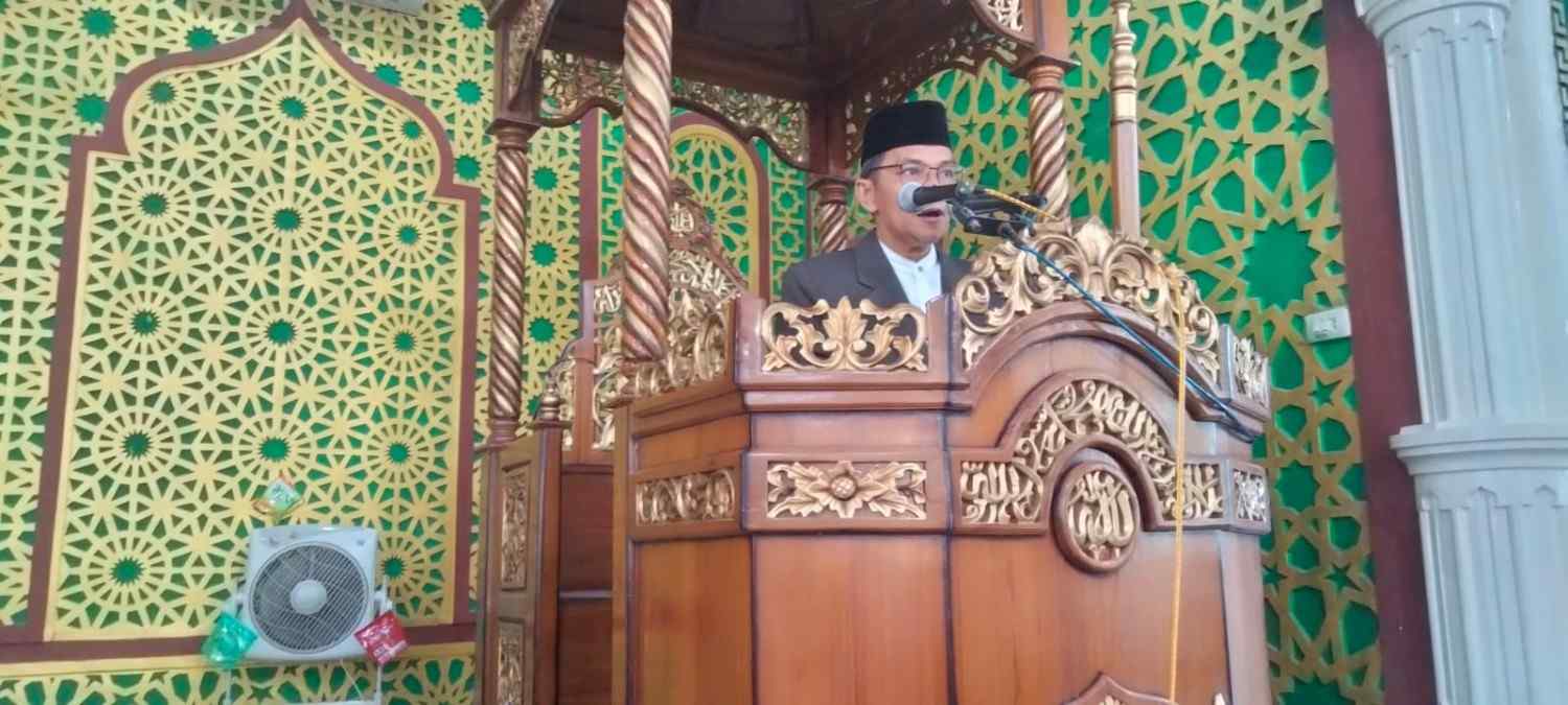 Prof.Dr.Maizuddin, M.Ag Sedang Menyampaikan Khutbah Idul Fitri di Mesjid Baiturrahmah Gampong Suaq Bakung, Senin 31 Maret 2025