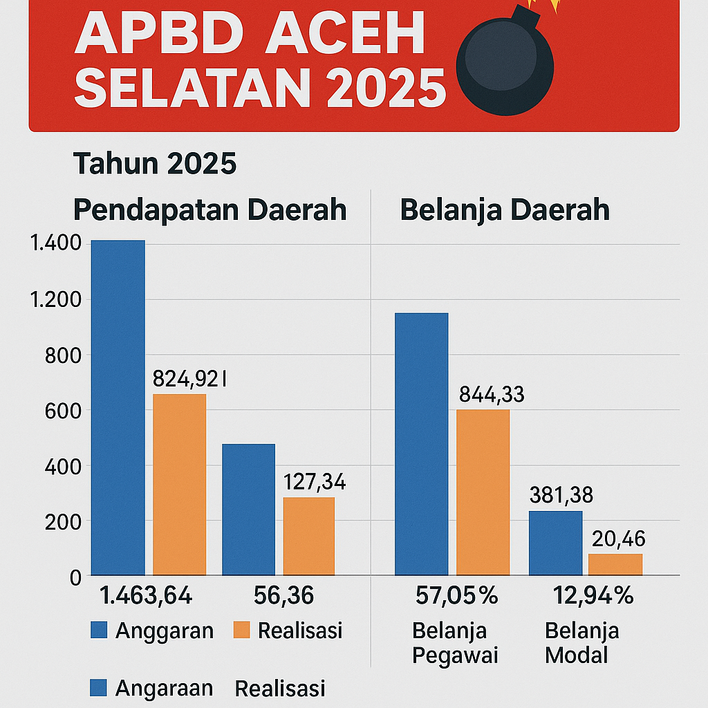 ACEH SELATAN | SaranNews – Lembaga Swadaya Masyarakat FORMAKI (Forum Masyarakat Anti Korupsi Indonesia) menyoroti kinerja keuangan Pemerintah Kabupaten Aceh Selatan tahun anggaran 2025 yang dinilai tidak mencerminkan prinsip tata kelola keuangan daerah yang baik. Berdasarkan data realisasi APBD hingga November 2025 (SIKD per 8 November 2025), FORMAKI menemukan sejumlah indikator kritis yang menunjukkan lemahnya efektivitas penggunaan anggaran publik.