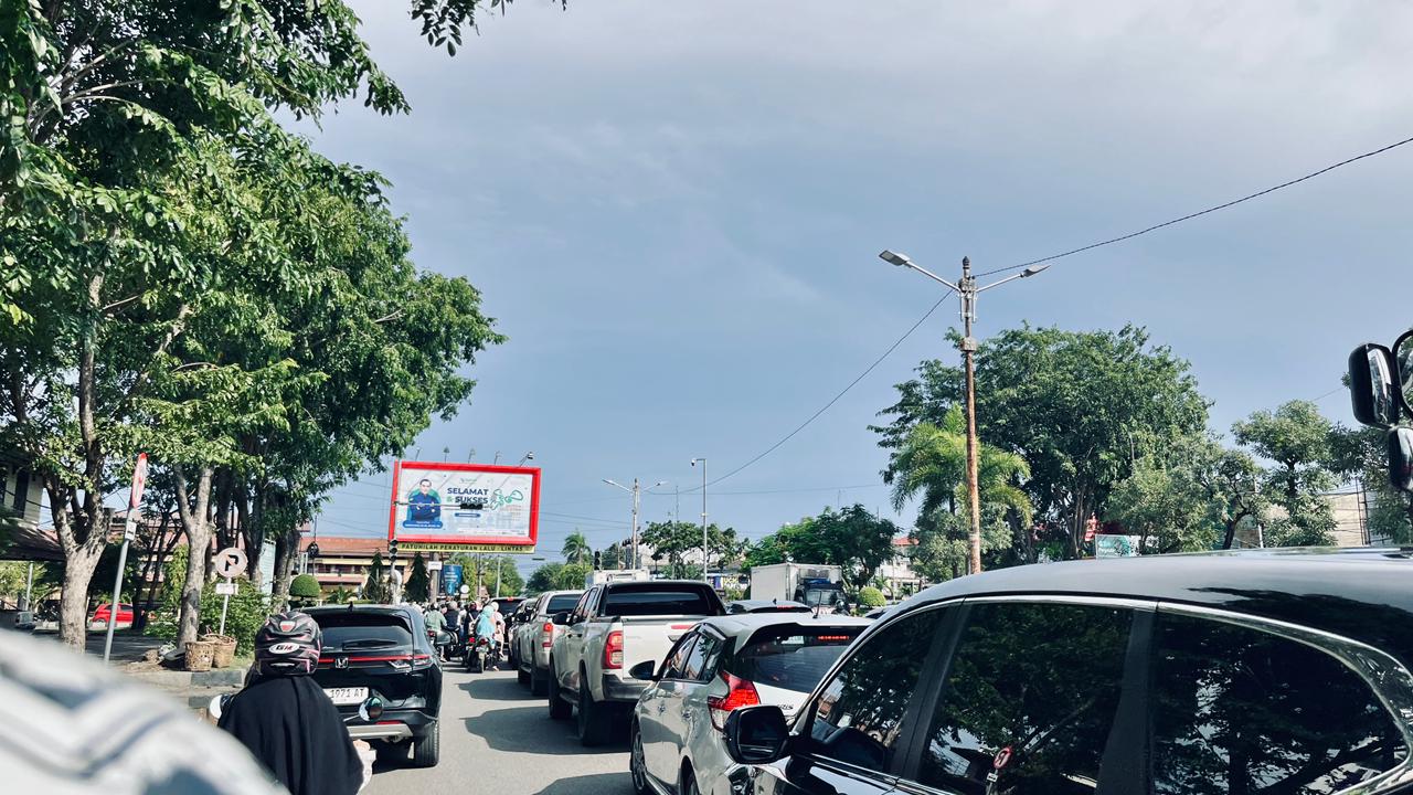 BANDA ACEH | SaranNews — Kemacetan lalu lintas biasanya identik dengan kebisingan suara klakson yang bersahut-sahutan. Namun, pemandangan berbeda justru terekam di sejumlah ruas jalan utama Banda Aceh, di mana para pengendara tetap sabar menunggu antrean tanpa saling memprovokasi dengan klakson, Senin (19/1/2026).