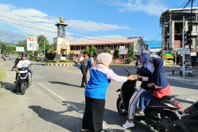 SaranNews.Net – SMK Negeri 1 Tapaktuan Kabupaten Aceh Selatan menggelar aksi berbagi takjil Ramadhan bagi pengguna jalan di pusat Kota Tapaktuan, Selasa (11/3/2025)