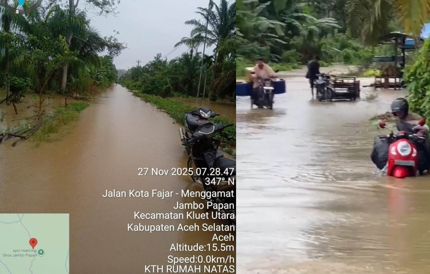 ACEH SELATAN | SaranNews – Jebolnya tanggul sungai di Desa Jambo Papan, Kecamatan Kluet Tengah, pada Kamis (27/11/2025) mengakibatkan banjir yang melumpuhkan akses transportasi utama dari Menggamat menuju Kota Fajar. Kondisi ini diperparah dengan lambatnya penanganan darurat akibat kendala koordinasi dengan pihak perusahaan setempat.