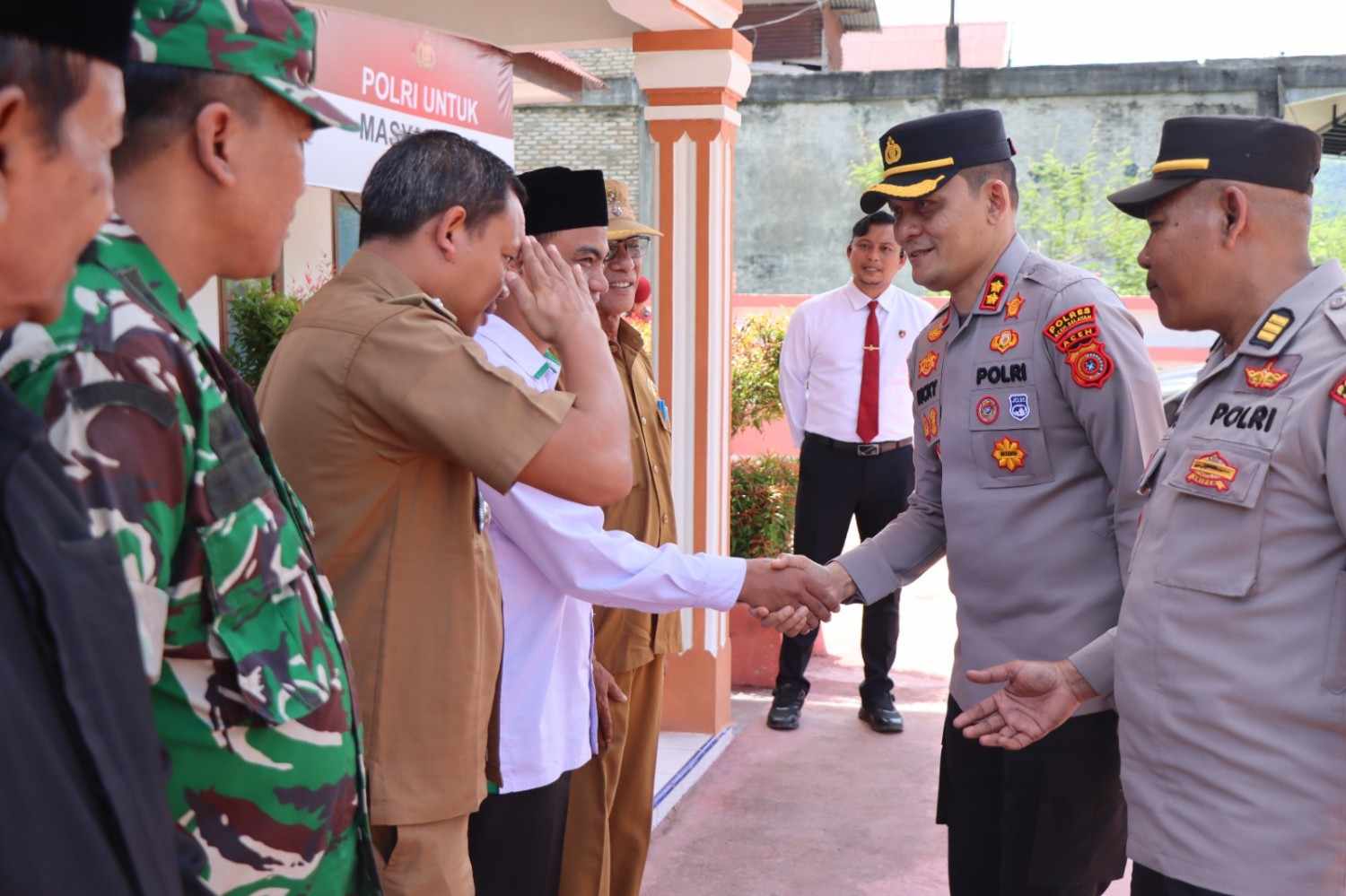 Dalam kunjungannya, Kapolres Aceh Selatan disambut langsung oleh Kapolsek beserta jajaran, serta dihadiri oleh Camat, Danramil, Tokoh Agama (Toga), Tokoh Adat (Todat), dan Tokoh Masyarakat (Tomas). Selain berdialog langsung dengan para tokoh, Kapolres juga menyampaikan arahan terkait pentingnya kolaborasi antara aparat dan masyarakat dalam menjaga keamanan dan ketertiban lingkungan.