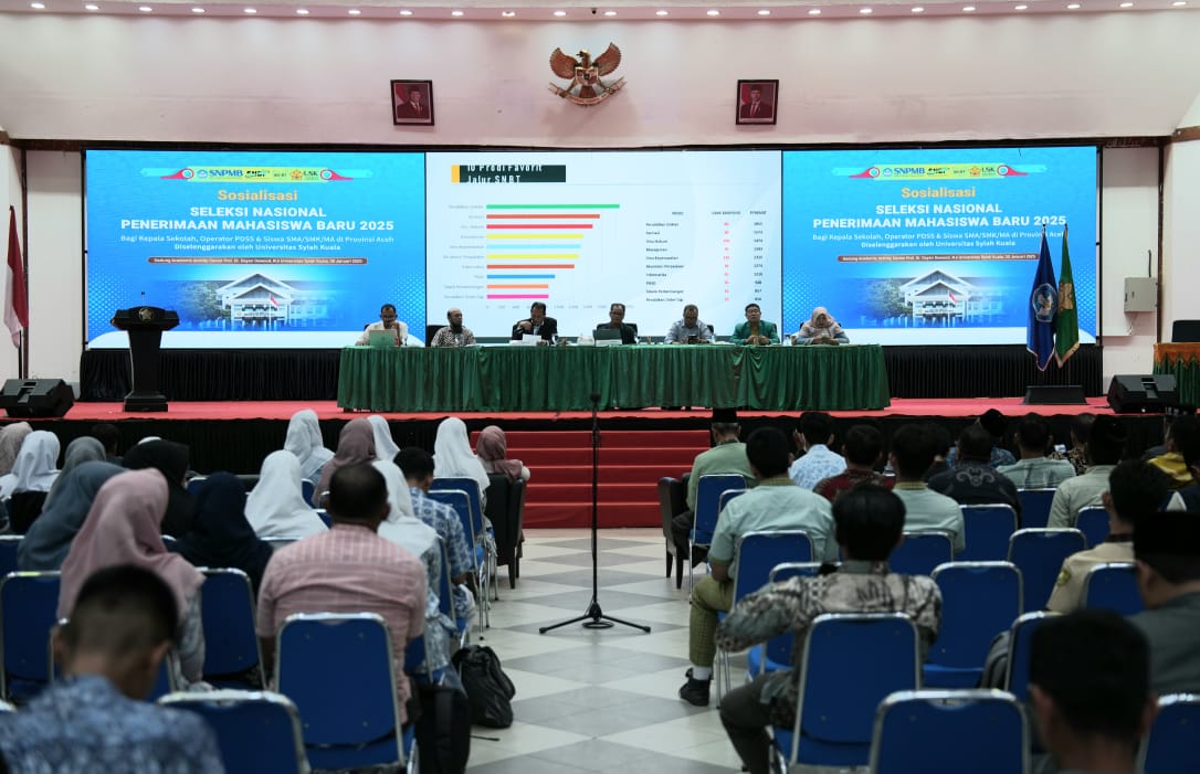 SaranNews | Banda Aceh – Sejumlah 430 orang siswa dari tiga kabupaten/kota Aceh Besar, Banda Aceh dan Sabang, mengikuti sosialisasi Seleksi Nasional Penerimaan Mahasiswa Baru (SNPMB) 2025 di Universitas Syiah Kuala (USK).